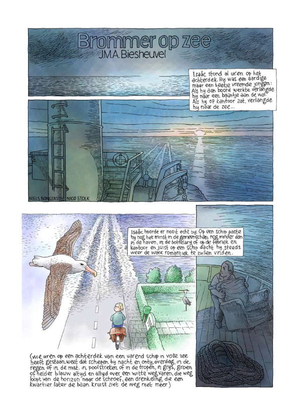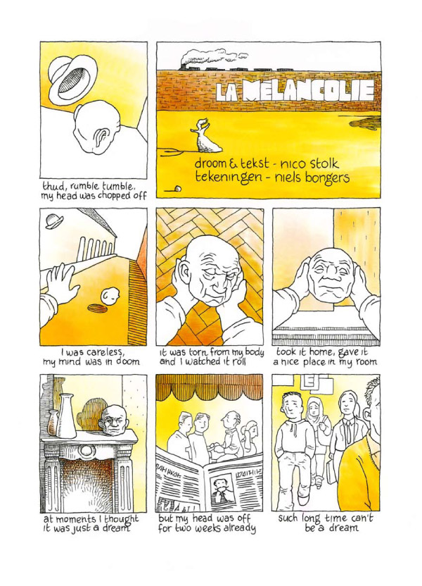 Het zijn geen ‘verstrippingen’ waarin het geschreven woord is omgezet naar beeld met tekst. Nico en Niels geven een eigen draai aan de oorspronkelijke teksten; door ze te vertalen naar een andere tijd of een andere plaats (de stad Utrecht - het is per slot een uitgave van De Inktpot), door er andere associaties aan te verbinden of door de woorden helemaal weg te laten.