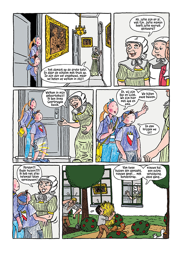 wordt visueel gemaakt doordat de verschillende tijdvakken door evenzovele tekenaars getekend worden. De tekenstijl verandert dus bij de overgang naar een andere tijd. De kinderen echter blijven zichzelf