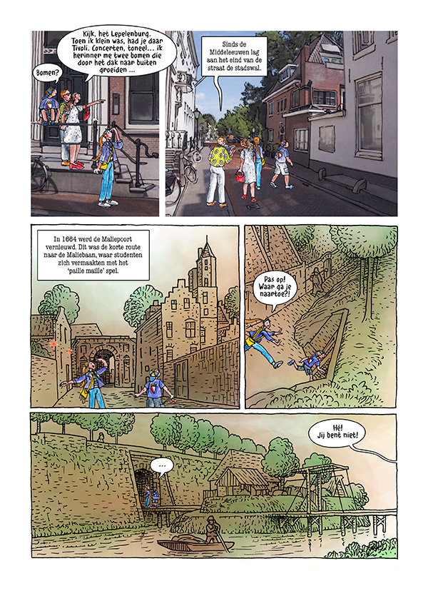 Een stripboek over tijd, aan de hand van de geschiedenis van een zevental panden in de binnenstad van Utrecht. Het boek is gemaakt ter gelegenheid van het 75-jarig jubileum van het Utrechts Monumentenfonds, maar is beschikbaar voor iedereen die geïnteresseerd is in de geschiedenis van de stad.