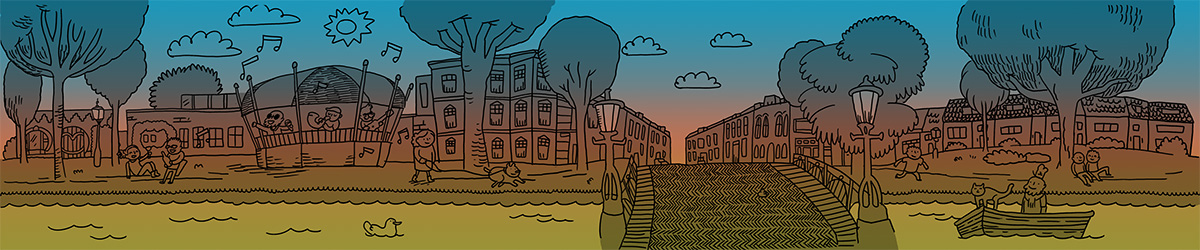 Het Panorama is sinds mei 2017 ook in supergroot formaat te zien. Rond de basis van de muziektent op het Lepelenburg zijn platen aangebracht met uitvergrotingen van de beide panorama's. Op 26 mei 2017 zijn de platen feestelijk onthuld door de tekenaars, onder toeziend oog van burgemeester van Zanen en een heleboel anderen. Aneo Mario Koning heeft foto's gemaakt. Pierre & Les Optimistes zorgden voor de muzikale omlijsting. Een soort Droste-effect: het Lepelenburg en de muziektent staan zelf ook weer afgebeeld in beide panorama's...
