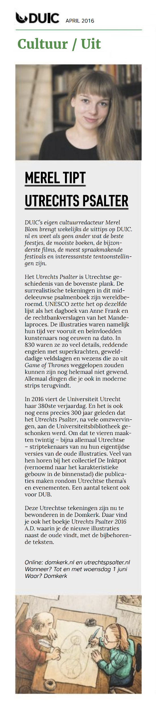 Win het Utrechts Psalter in stripvorm (de prijsvraag is voorbij...) - DUIC, april 2016