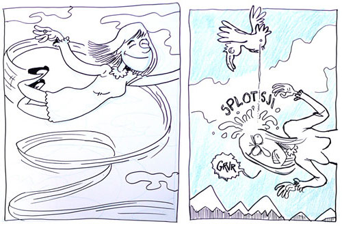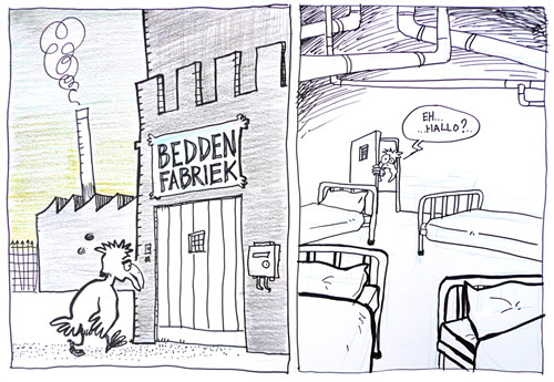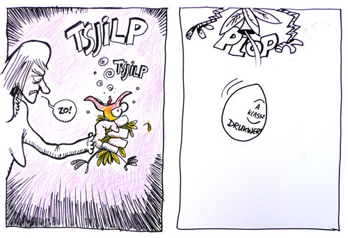 Op de Dag van de Literatuur in de Rotterdamse Doelen, maakten Inktpot-tekenaars - met wat hulp van vrienden - live een stripverhaal. De enige afspraak hierbij was dat elke tekenaar reageert op het plaatje van de voorafgaande, en dat de strip uiteindelijk 'rond' kwam. We hadden hier 6 uur de tijd voor.